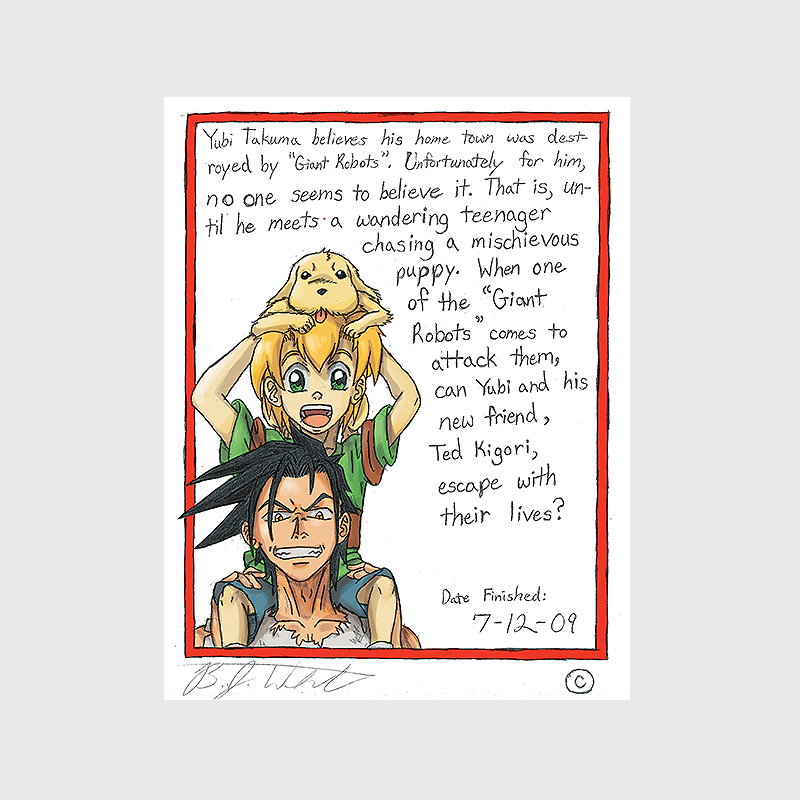 Yubi takuma believes his home town was destroyed by “Giant Robots”. unfortunately for him, no one seems to believe it. That is, until he meets a wandering teenager chasing a mischievous puppy. When one of the “Giant robots” comes to attack them, can yubi and his new friend, tad kigori, escape with their lives?